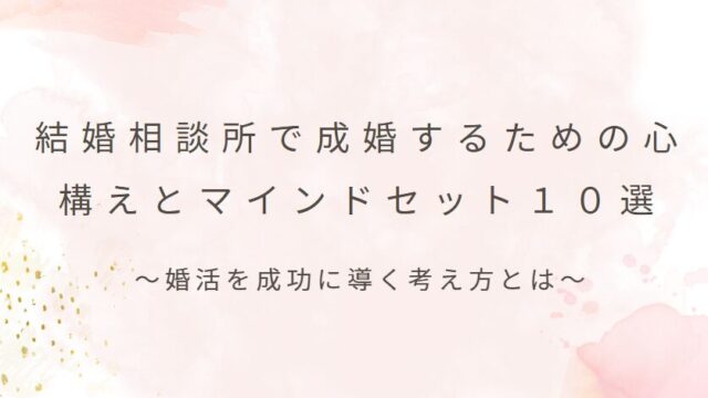 結婚相談所で成婚するための心構えとマインドセット10選~婚活を成功に導く考え方とは~