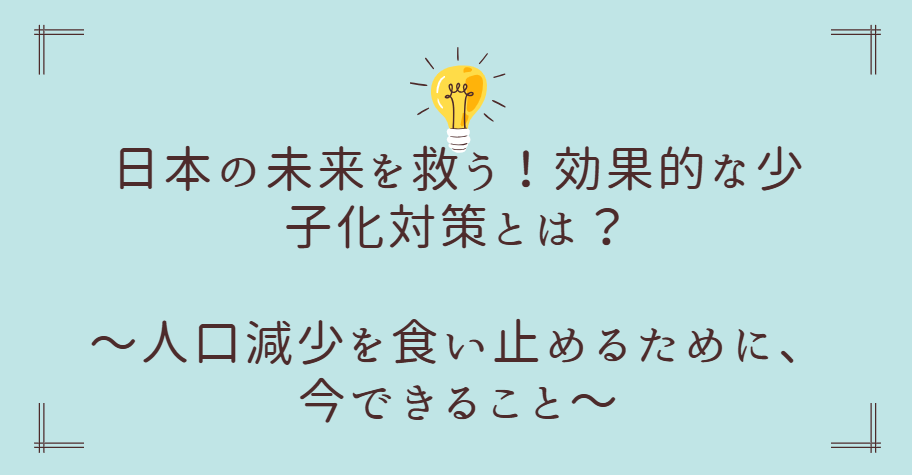 日本の未来を救うために、今こそ効果的な少子化対策を実行する時です。